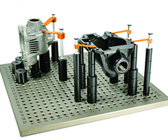 Bridages modulaires et personnalisés utilisés pour maintenir les pièces en toute sécurité pour un contrôle dimensionnel.